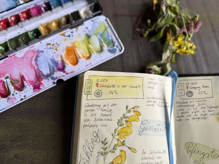 Verbinde Achtsamkeit und Kreativität: Beobachte die Natur und halte deine Eindrücke in Wort und Bild fest.